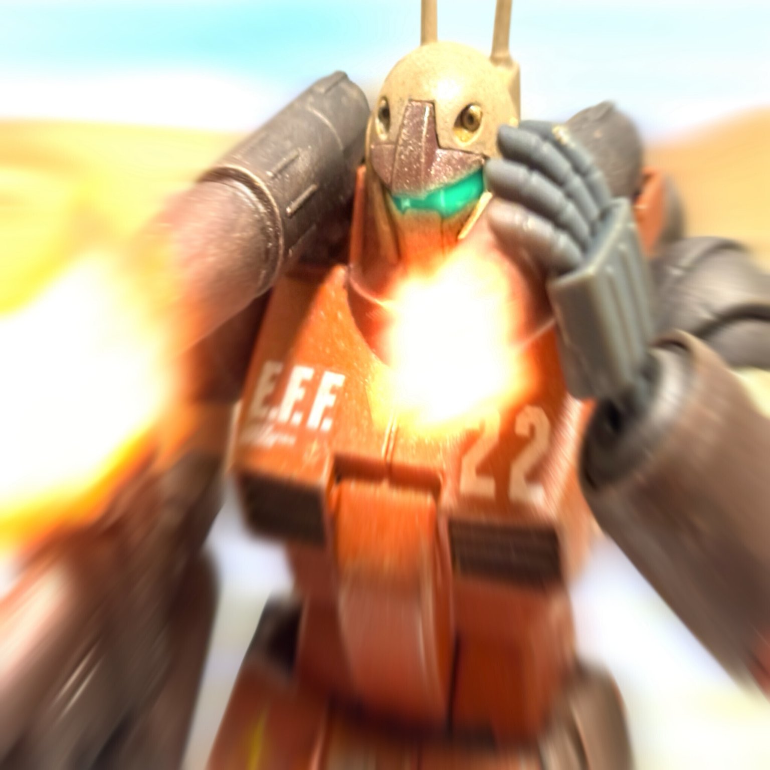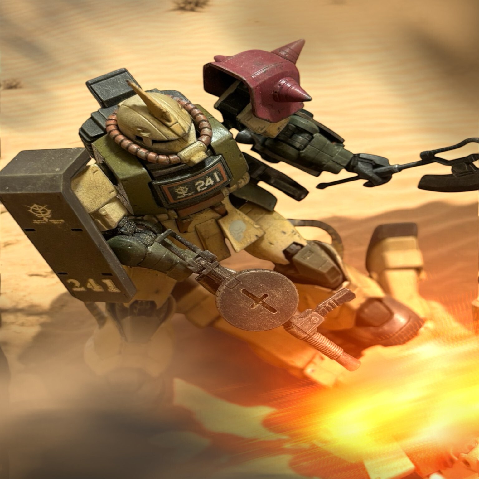 戦闘濃度のミノフスキー粒子が、肌に痛いほどに感じられる。実際は、そんなことなどあり得ないと分かっているのだが、集中力の高まりと共に、ミノフスキー粒子下を駆ける機体と、自身の身体が一体化してくるように思えてくる。