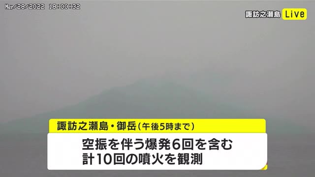 十島村の諏訪之瀬島では噴火が相次いでいて、28日は午後5時までに10回の噴火が観測されています。