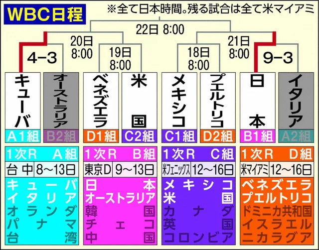 WBC全日程と準々決勝以降の詳細日程