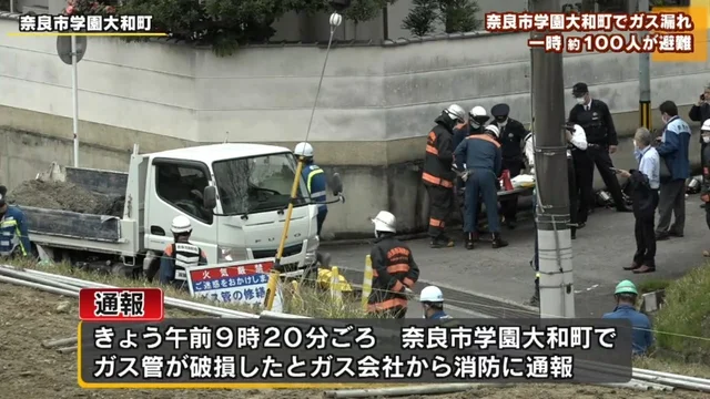 24日午前9時20分ごろ、奈良市学園大和町でガス管が破損