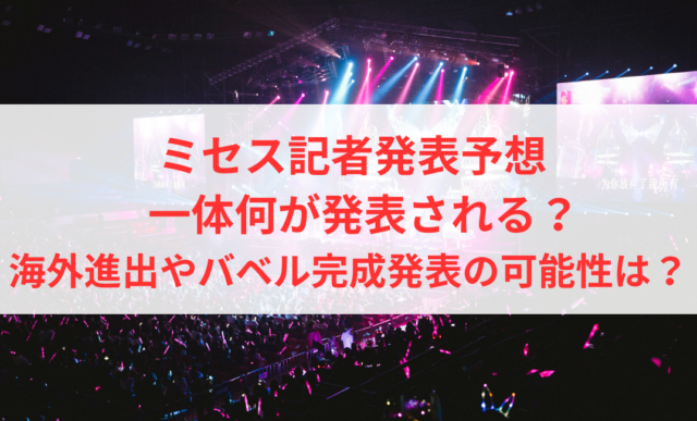 ミセス記者発表予想!内容は一体何?海外進出やバベル完成発表の可能性は?Mrs. GREEN APPLE(ミセスグリーンアップル)が、神奈川にあるKアリーナ横浜にて開催されたon Harmonyのファイナル公演で、記者発表が行われることを発表しました。「12月2日空いてる?【記者発表】するからよろしくね」とボーカルの大森さんが仰っており、その日以降ファンの間で色々な予想が飛び交っていました。そこで当記事では、ミセスの記者発表内容…mi-yan-cook.com