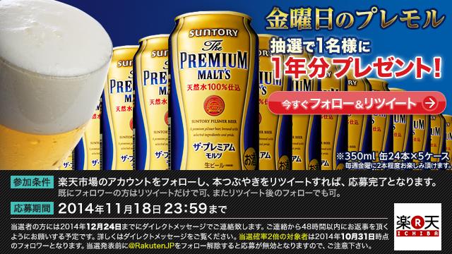 「サントリー ザ・プレミアム・モルツ1年分(5ケース)」が抽選で1名様に当たる!【応募方法】フォロワーの皆様はリツイートだけで応募完了!11月30日迄 #楽天プレモル ※フォロー解除は無効となります pic.twitter.com/nIlzXTtSou