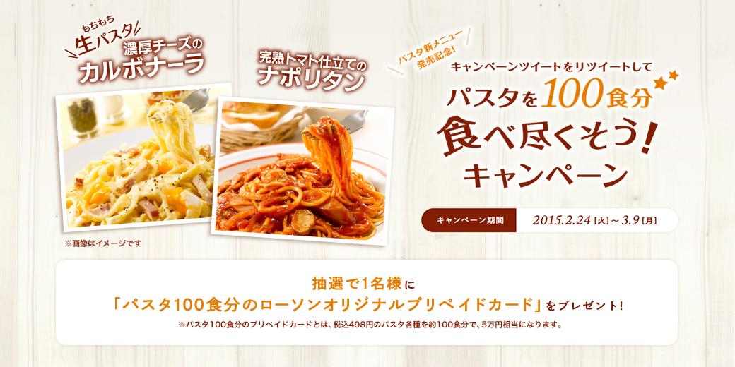 パスタ新メニュー発売記念♪ @akiko_lawson をフォローし、この投稿をリツイートすると、抽選で「パスタ100食分のローソンオリジナルプリペイドカード」をプレゼント! #パスタ lawson.eng.mg/c9330 pic.twitter.com/mLuw3IDVGU
