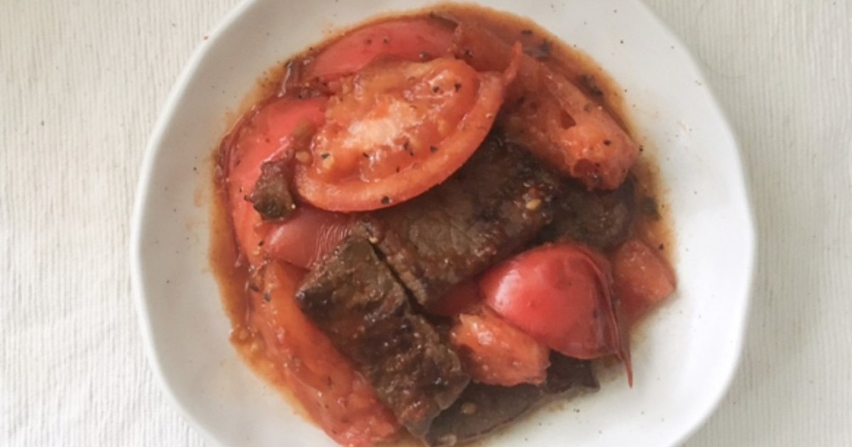 ストックしておいた野菜料理と牛肉トマトの蒸し炒め。