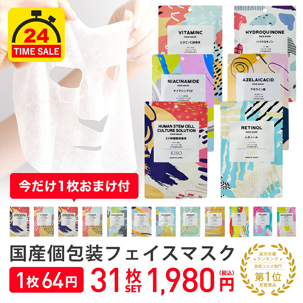 【24時間タイムセール 】1枚おまけ付き KISO CARE 高濃度美容原液配合フェイスマスク 個包装 シートマスク フェイスパック ハイドロキノン ヒト幹細胞 ビタミンC レチノール ガラクトミセス アゼライン酸 ナイアシンアミド ティーツリー シカ CICA 福袋 送料無料