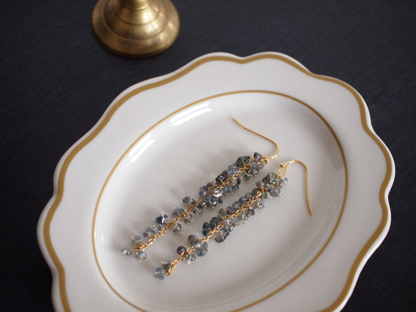 シックなカラーがしゃらりと揺れるラグジュアリーなピアスです。