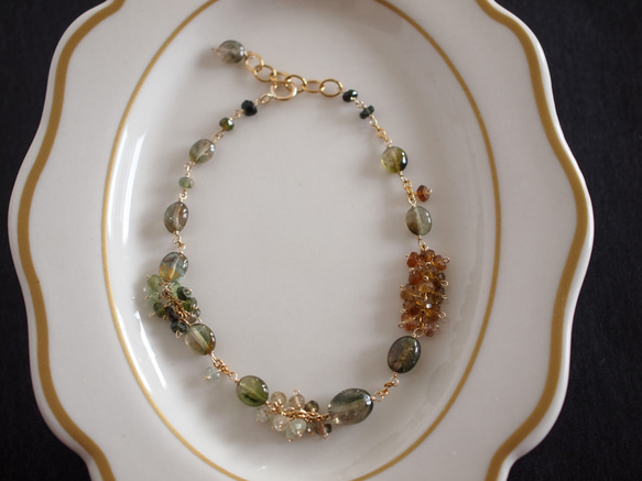 ボタンカットのトルマリンを組み合わせたブレスレットです。