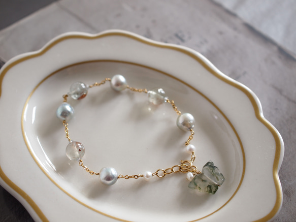 モスアゲートの濃い緑の内包物と非常に相性が良いんです。