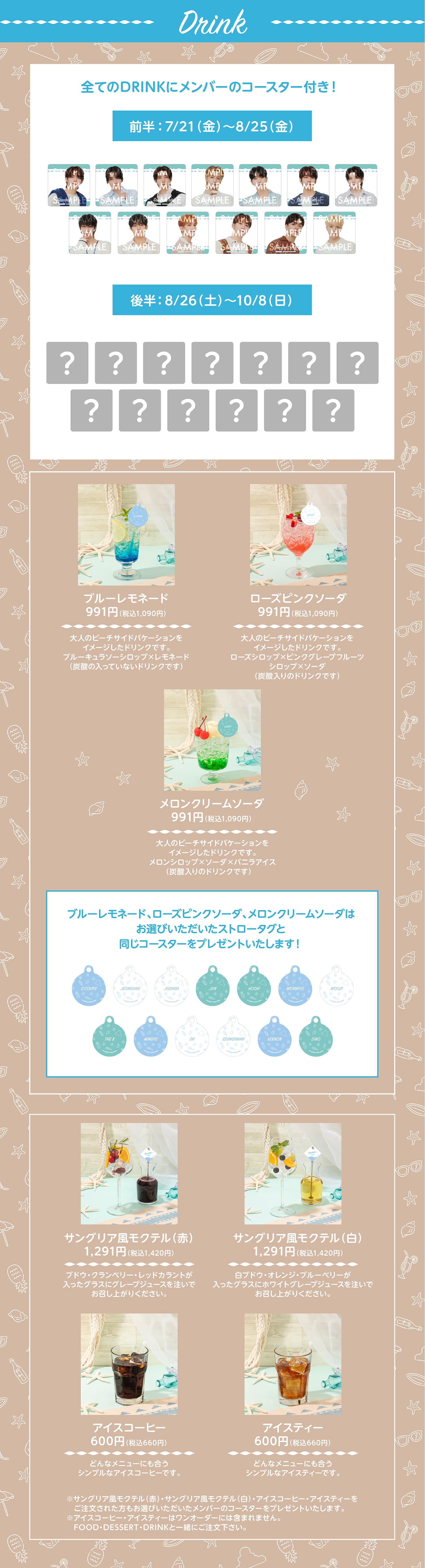 今回のCAFEは「BEACH VACATION」をテーマに、大人の爽やかなスタイルを身にまとったSEVENTEENに会える、CARAT必見の空間です!