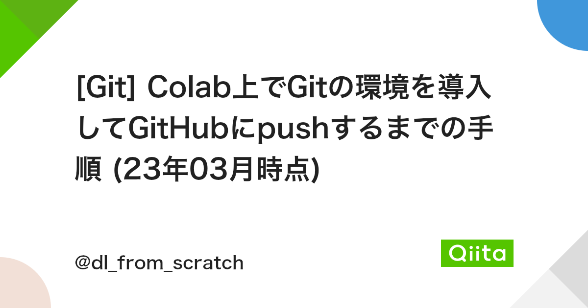 [Git] Colab上でGitの環境を導入してGitHubにpushするまでの手順 (23年03月時点)