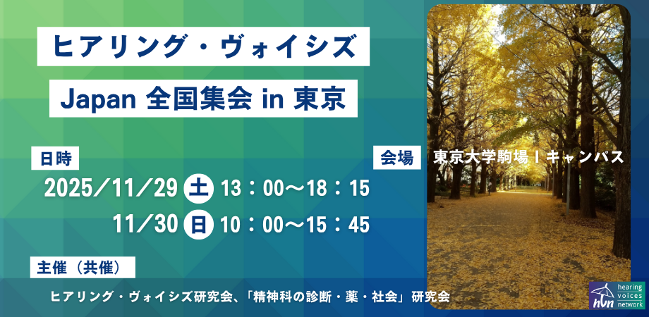 来る11月29日(土)、30日(日)は、ヒアリング・ヴォイシズ Japanの全国集会が開催されます。