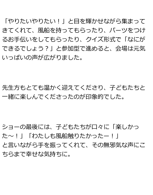 幼稚園のイベント、学校の謝恩会に私達と一緒に、子供の笑顔を作りましょう