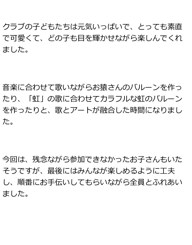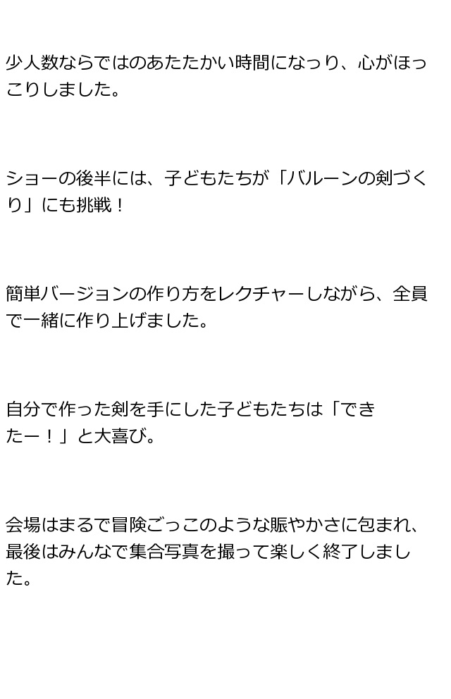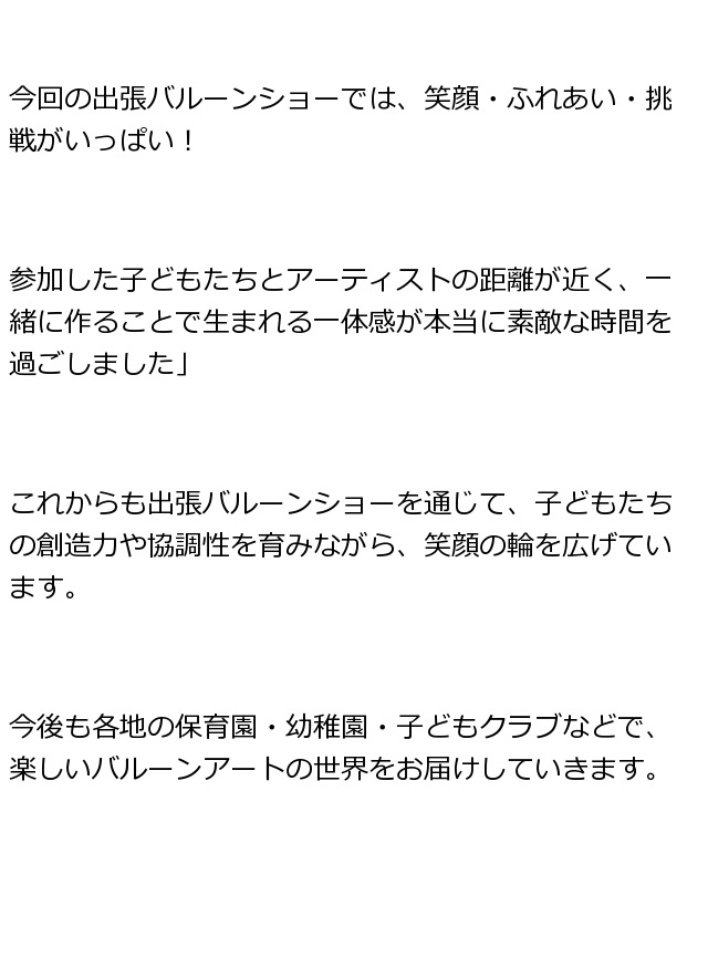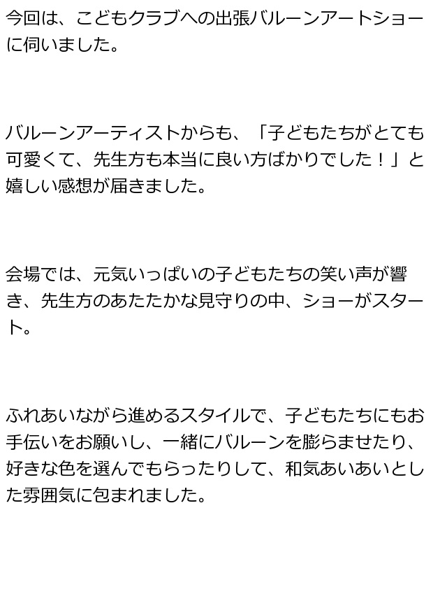 出張バルーンアートショーこどもクラブは元気いっぱい