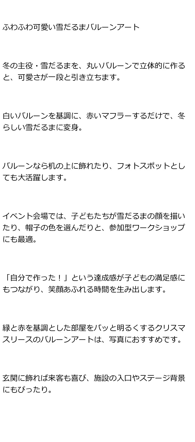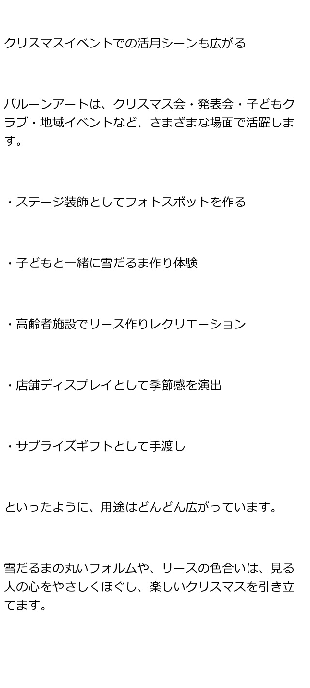 雪だるまとクリスマスリースで彩るバルーンアートの世界