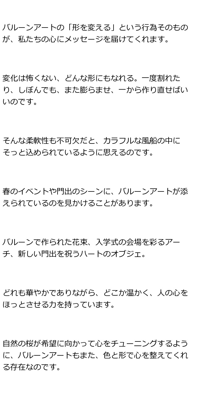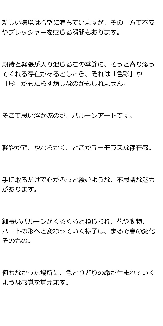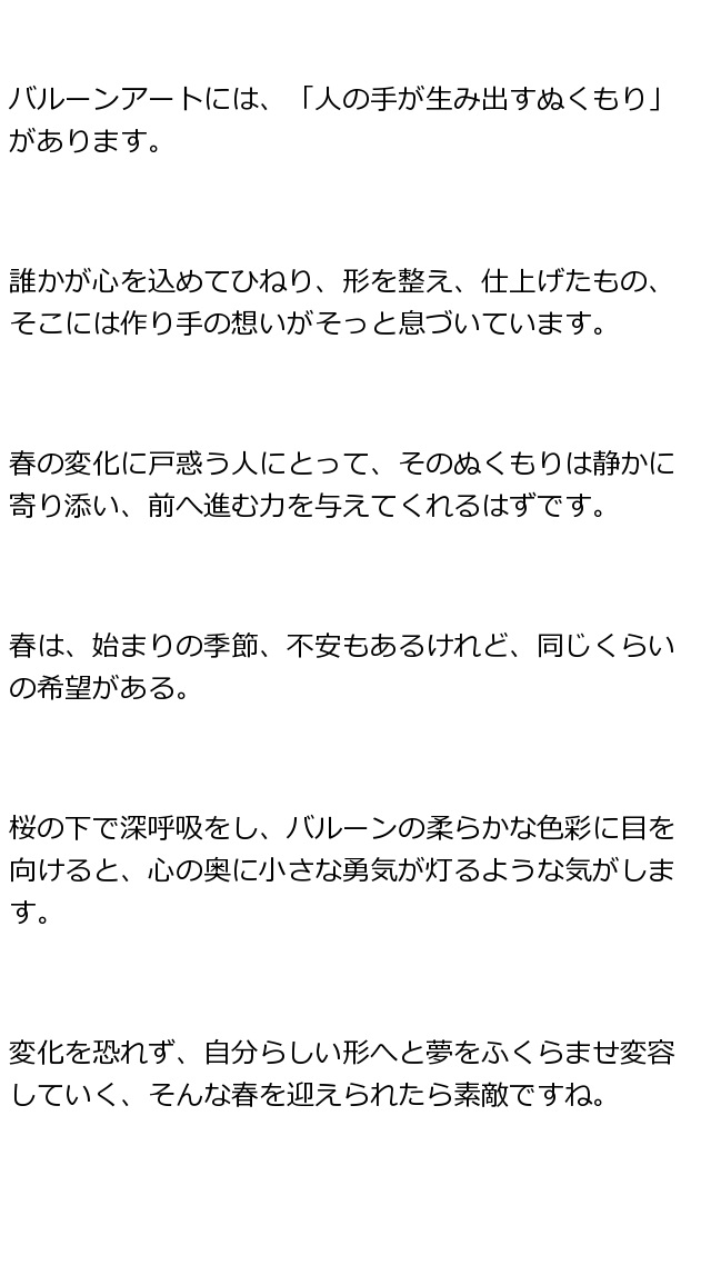 春風にのせて花咲くバルーンアートのプレゼントを届けます