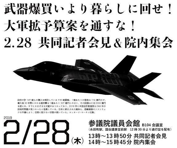 2月28日(木)参院議員会館B104 13時~13時50分 会見