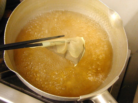 その”お揚げさん”を昆布だしにザラメ砂糖,味醂,醤油を加えて