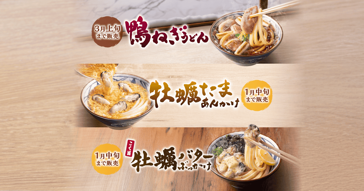 今回出た冬メニューは、「鴨ねぎうどん」、「牡蠣たまあんかけ」「牡蠣バターぶっかけ」のようです。