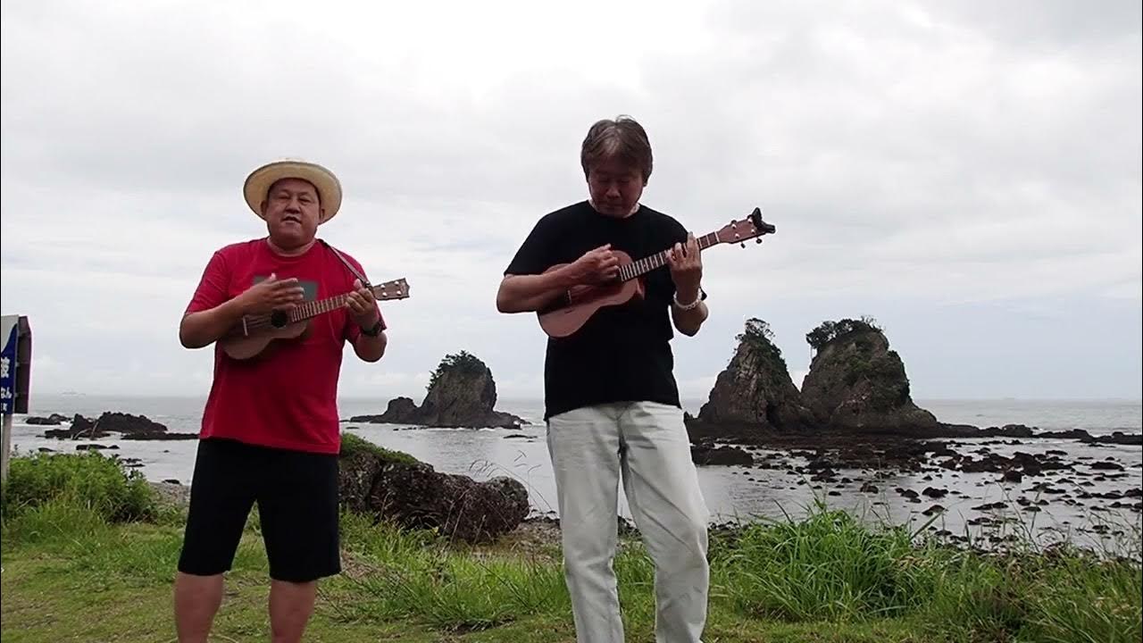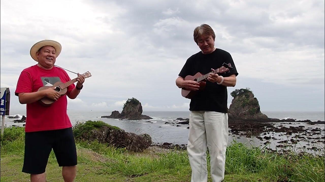 今回、こちらの海岸を背景に渡辺さんとウクレレ弾き語りを行いました。