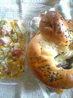 パン屋さんの“豆パン”とお惣菜さんの“カニコーンサラダ”(*´▽`*)