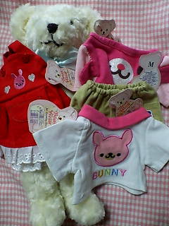 帰りにただでさえ布やら沢山買ったのに、前から欲しかった“テディベア”と、着せかえる服を私と娘達の分とそれぞれ買いました。