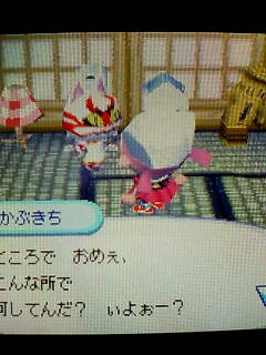【おいでよどうぶつの森】《ネイル村》いーぶいさんへ“かぶきち”の顔がよくわからなかったみたいなんで、今日は彼のサービスショットですいかがですかぁ名の通り“かぶき”顔ですちなみに、もモダンで渋い仕様ですよ( ^ー゚)b