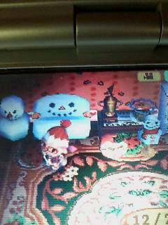 左側から“ミニミニ雪だるま”“雪だるまソファー”今日もらった“雪だるまスタンド