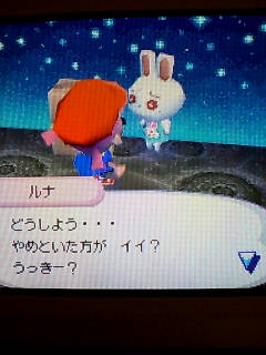【おいでよどうぶつの森】《やきとり村》“ルナ”が引越すと言うので引き止めたんですが、いつも思うんですが……これって引き止めたってみなされるの??とかついてるしこう言われると“ひょっとして引き止め出来てない”って何度も話しかけたりどなたか教えてください