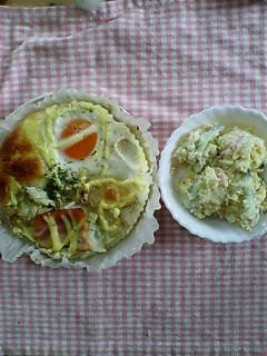 パン屋さんの“目玉でポン”と昨日の我が家の夕食の残った“ポテトサラダ”