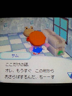 【おいでよどうぶつの森】《やきとり村》“サム”が引っ越すというので引き止めました。…ってか引き止めはあなたが写真くれないからであなたは私は生理的に受け付けないキャラなんですけど…Σ( ̄□ ̄;)(心の叫び)