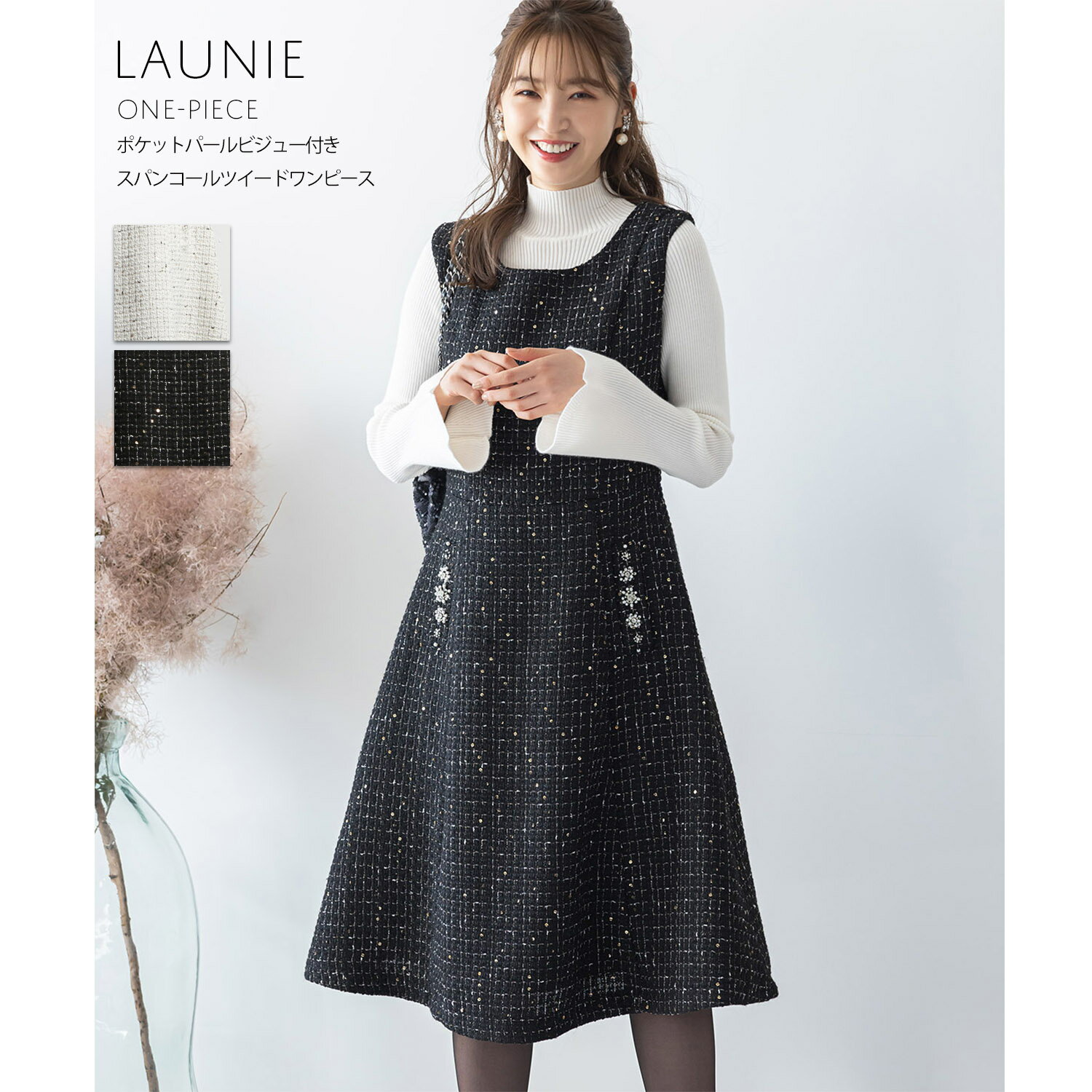 パールビジューが可愛いスパンコールツイードワンピースが再販開始です