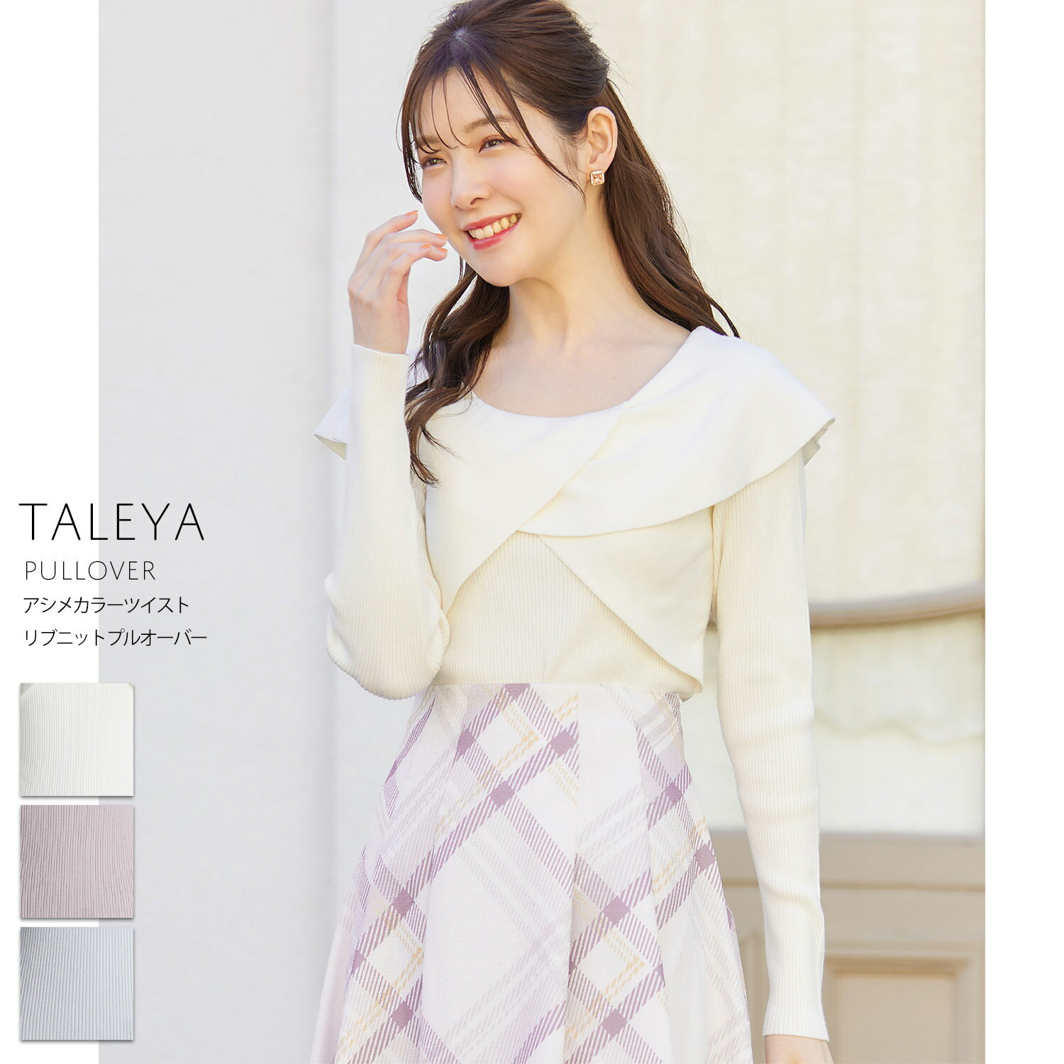3色展開 アシメカラーのツイストデザインリブニットプルオーバー