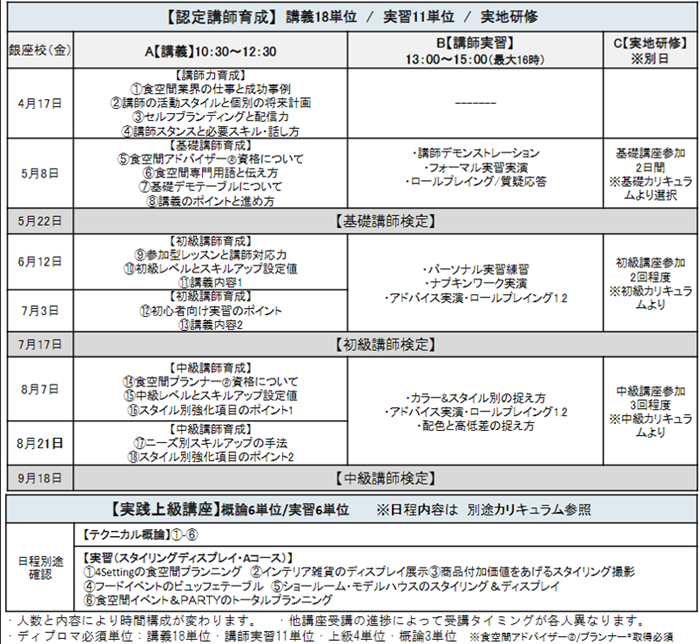 ◆対象:食空間専門資格取得者(初心者の方、同時受講可)