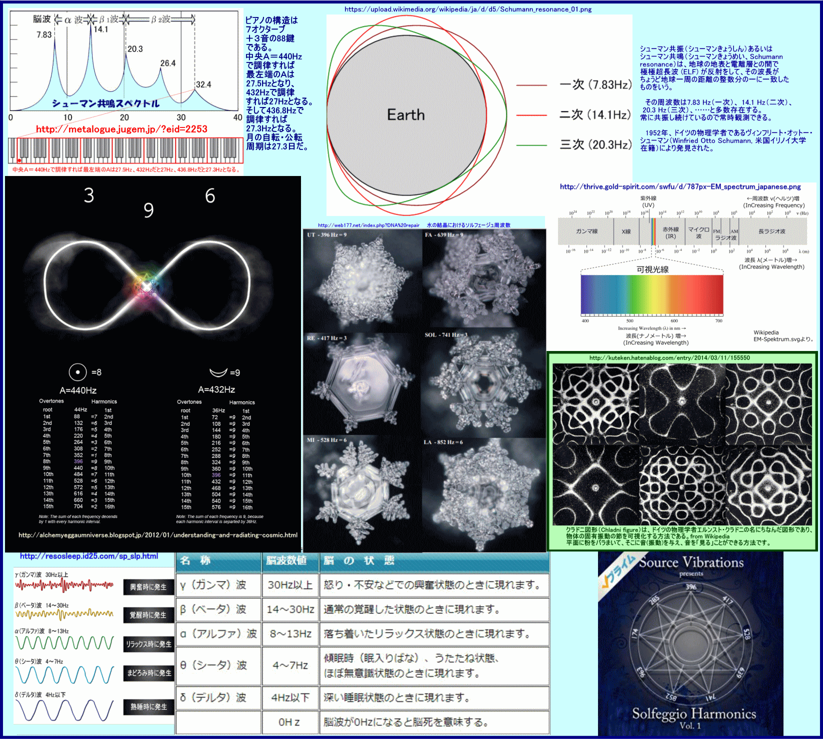 こうして見るとソルフェジオ周波数の数列は、174,258,639の3つであり、一桁換算すれば「3、6、9」の繰り返しになっていることが分かります。