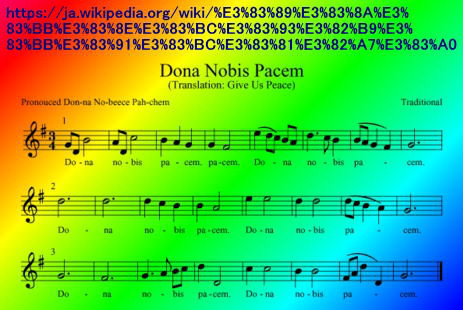 「ドナ・ノービス・パーチェム」は、この句を反復して歌われる伝統的なカノンです。その意味は「われらに平和を与えたまえ」です。先ず、このカノンを楽しんで マントラをカノン形式で唱えましょう。