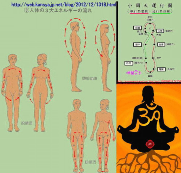 「氣の流れは 女性は時計回り、後ろから前に、男性は反時計回り後ろから前に