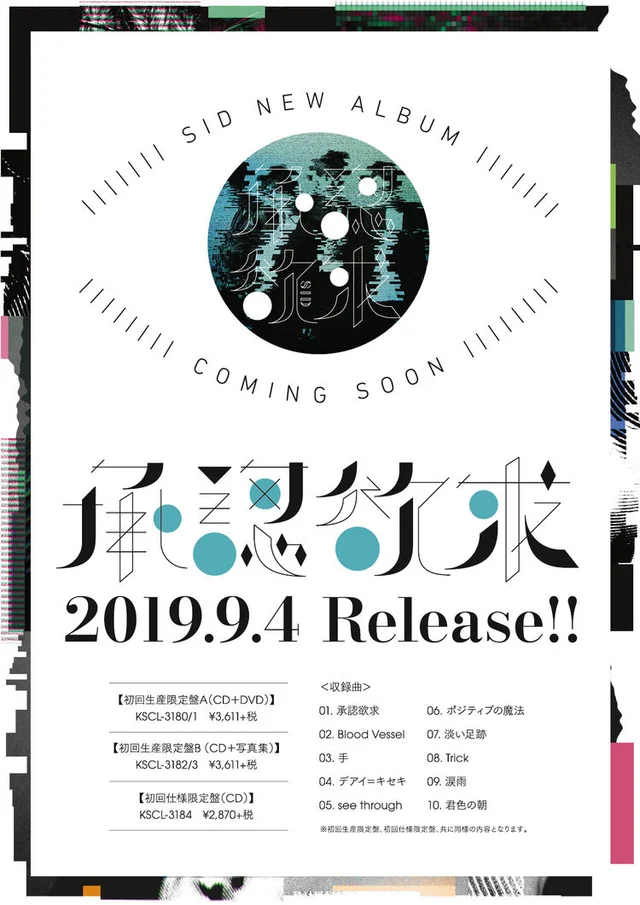 本作は2017年9月にリリースされた「NOMAD」以来、約2年ぶりとなるアルバム。シドが3月に行った神奈川・横浜アリーナ公演「SID 15th Anniversary GRAND FINAL at 横浜アリーナ ~その未来へ~」で披露した「君色の朝」を含む、新曲10曲が収録される。この発表に合わせて、アルバムのティザービジュアルが公開された。