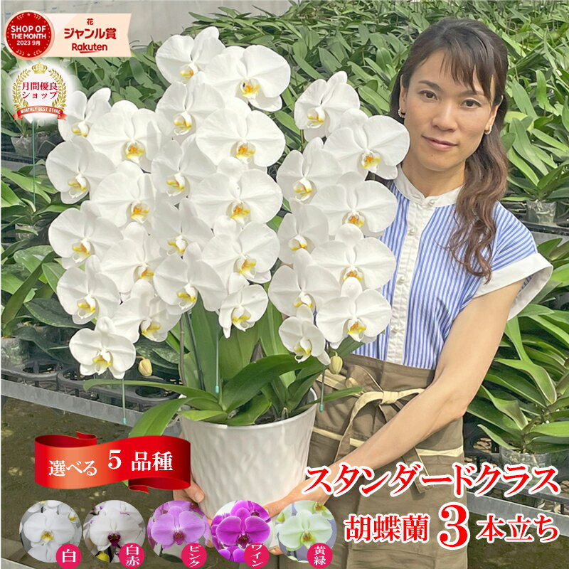 【30輪以上】 胡蝶蘭 大輪3本立ち スタンダードクラス 5色 【つぼみ含む】 蘭 花 ギフト お祝い お供え 開店祝い 開院祝い 就任祝い 昇進祝い 誕生日祝い 長寿祝い 新築祝い 移転祝い 内祝い 当選 必勝 供花楽天市場${EVENT_LABEL_01_TEXT}