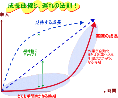 私たちは、右肩上がりの成長を期待しますが、実際にはS字カーブを描いて上昇していきます。