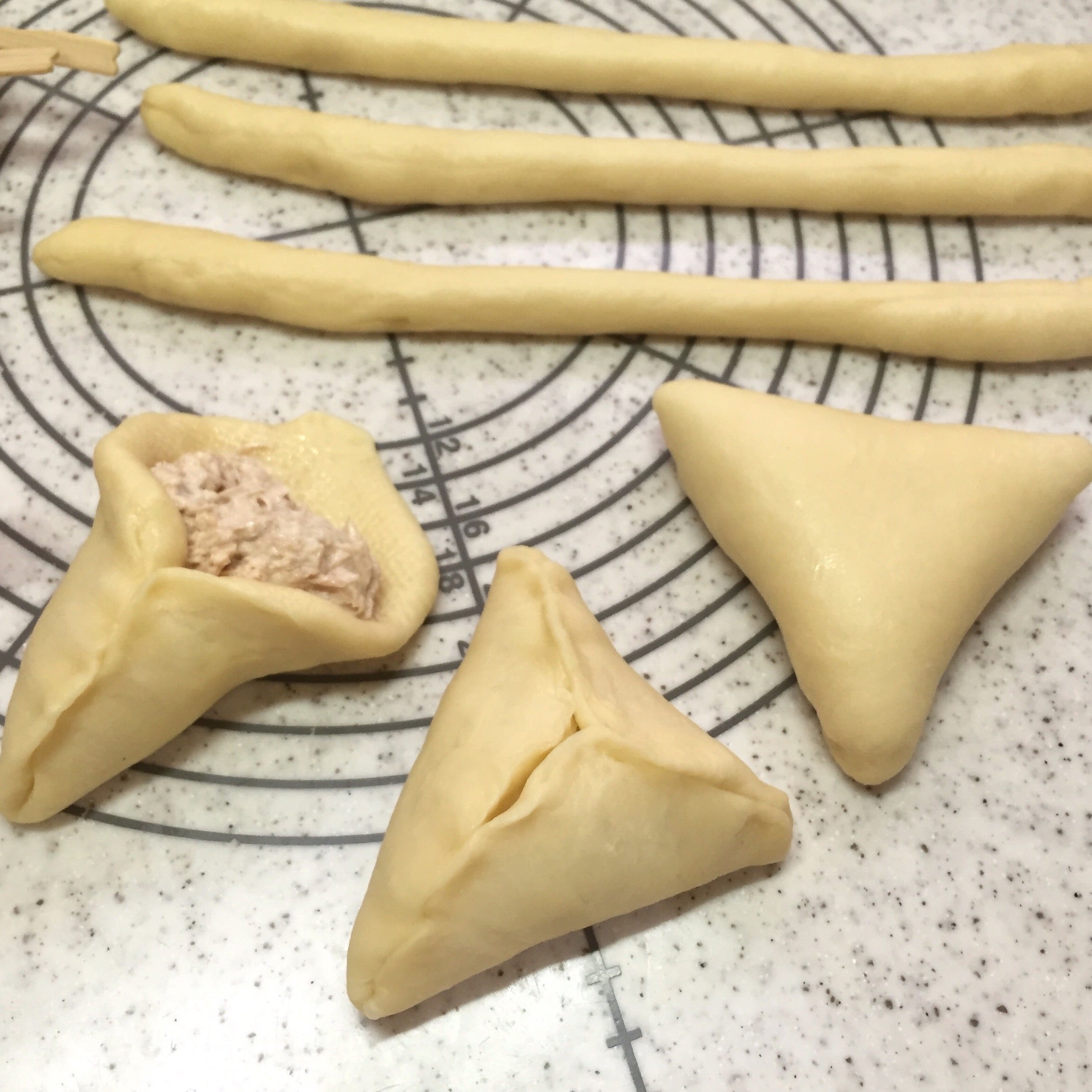 丸く伸ばし三方を閉じます