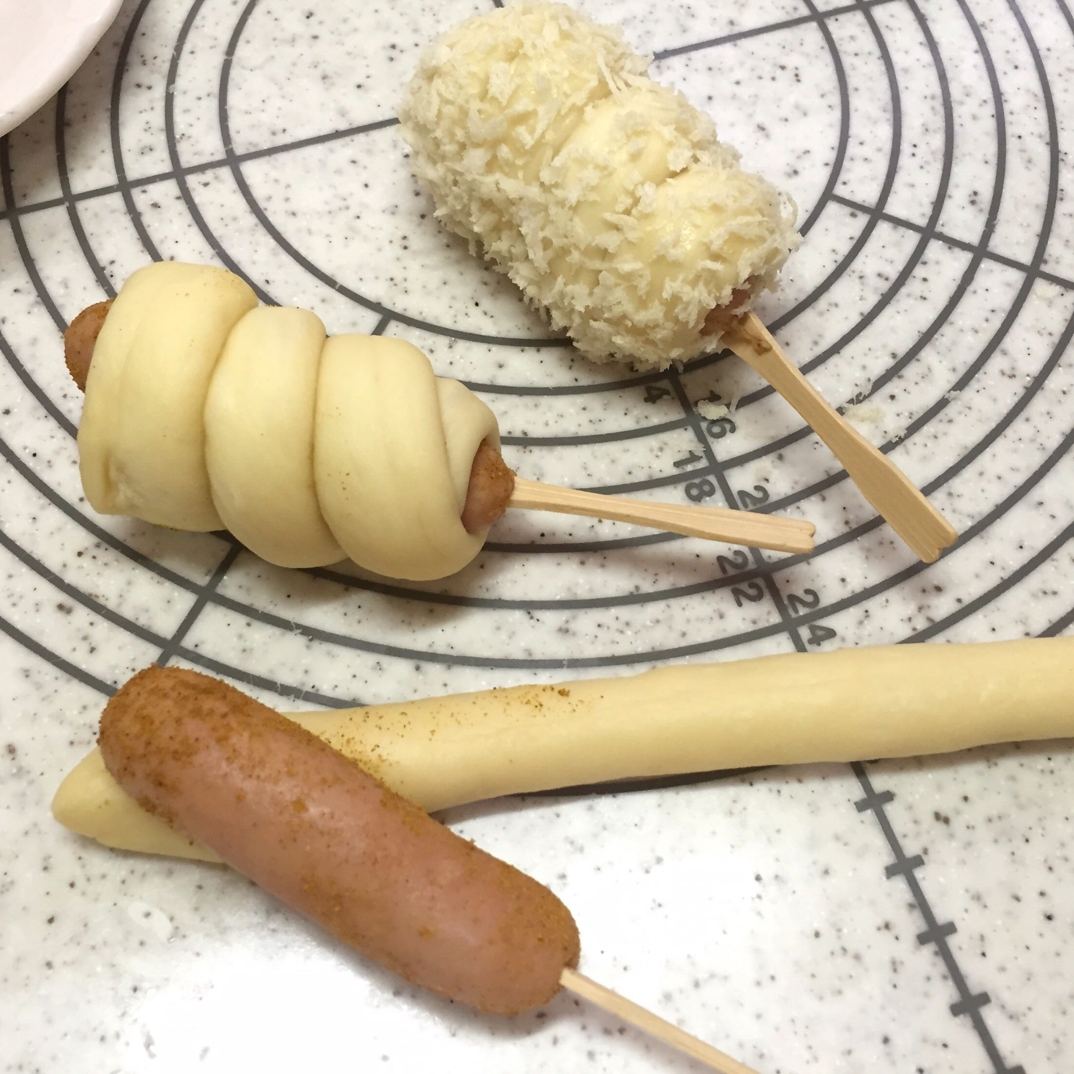 細長に伸ばした生地を巻き