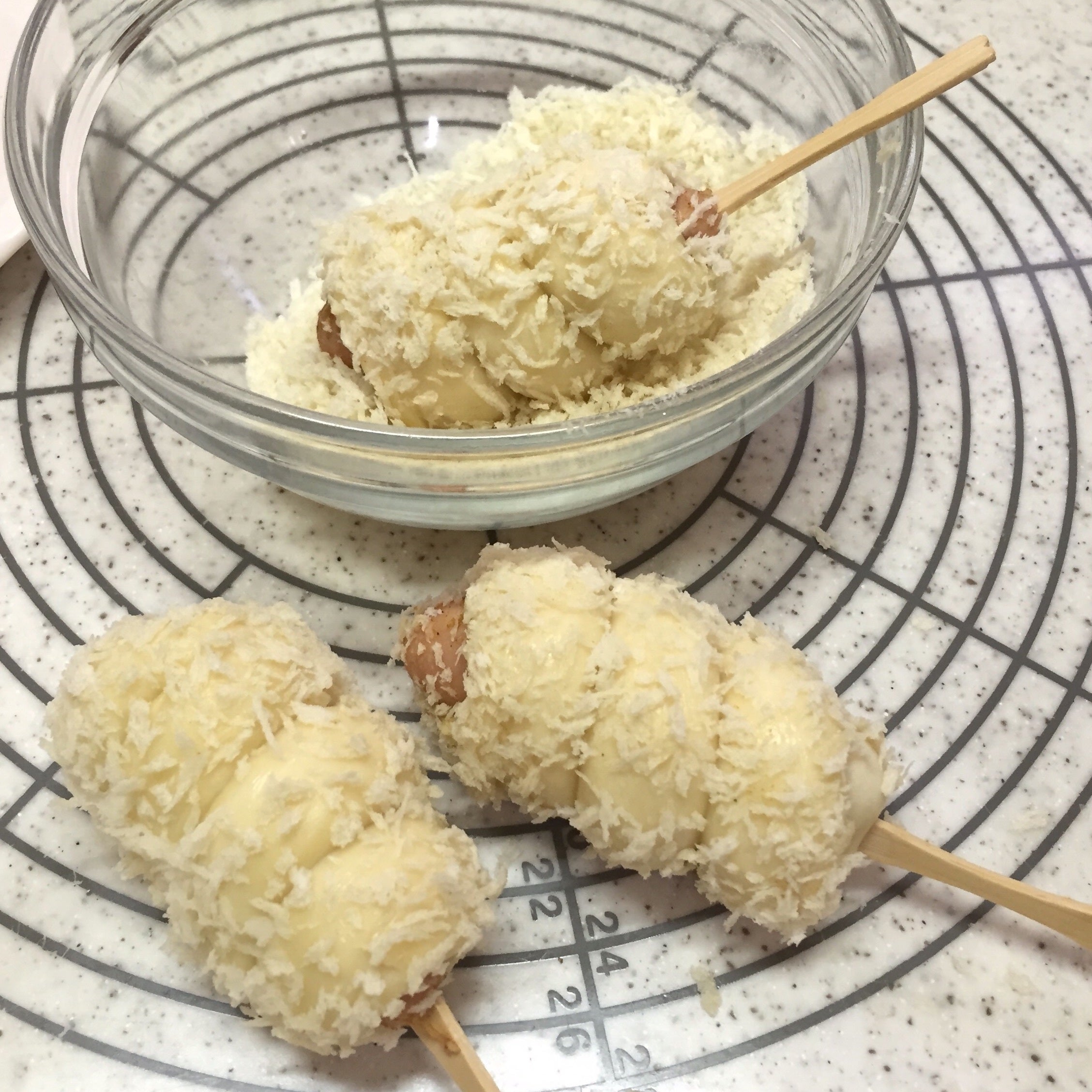 軽く霧吹き パン粉まぶします