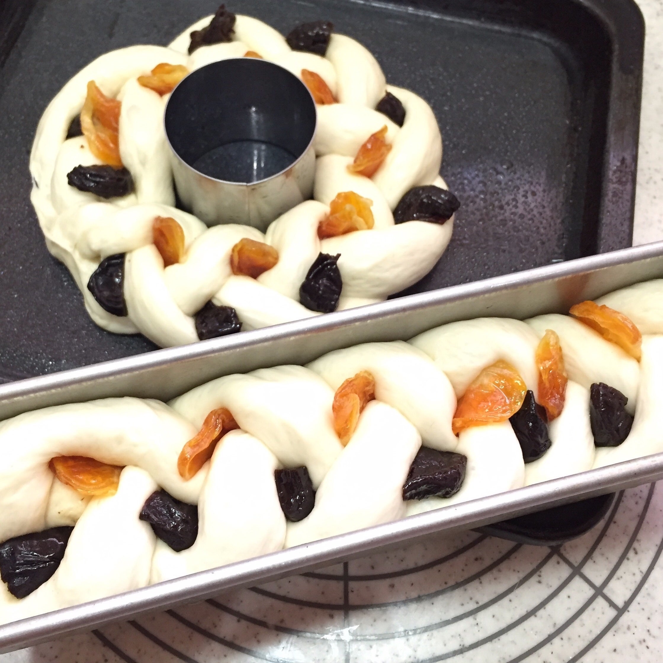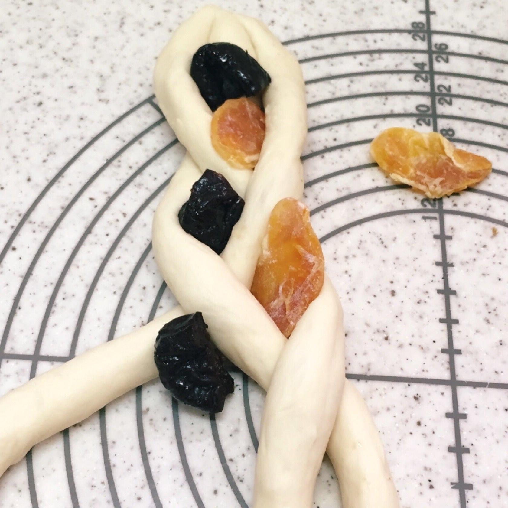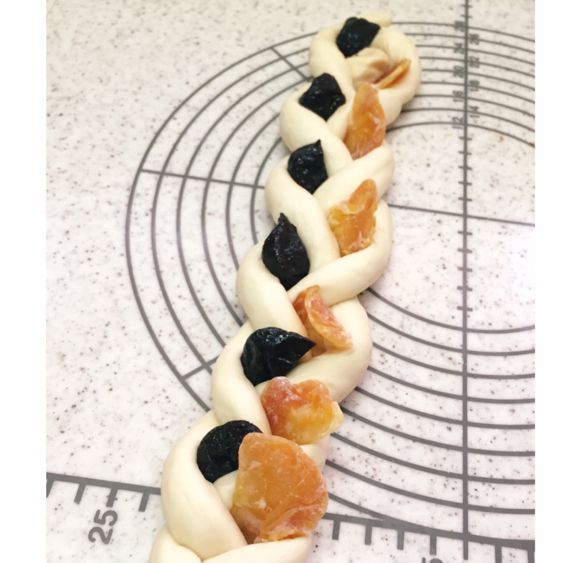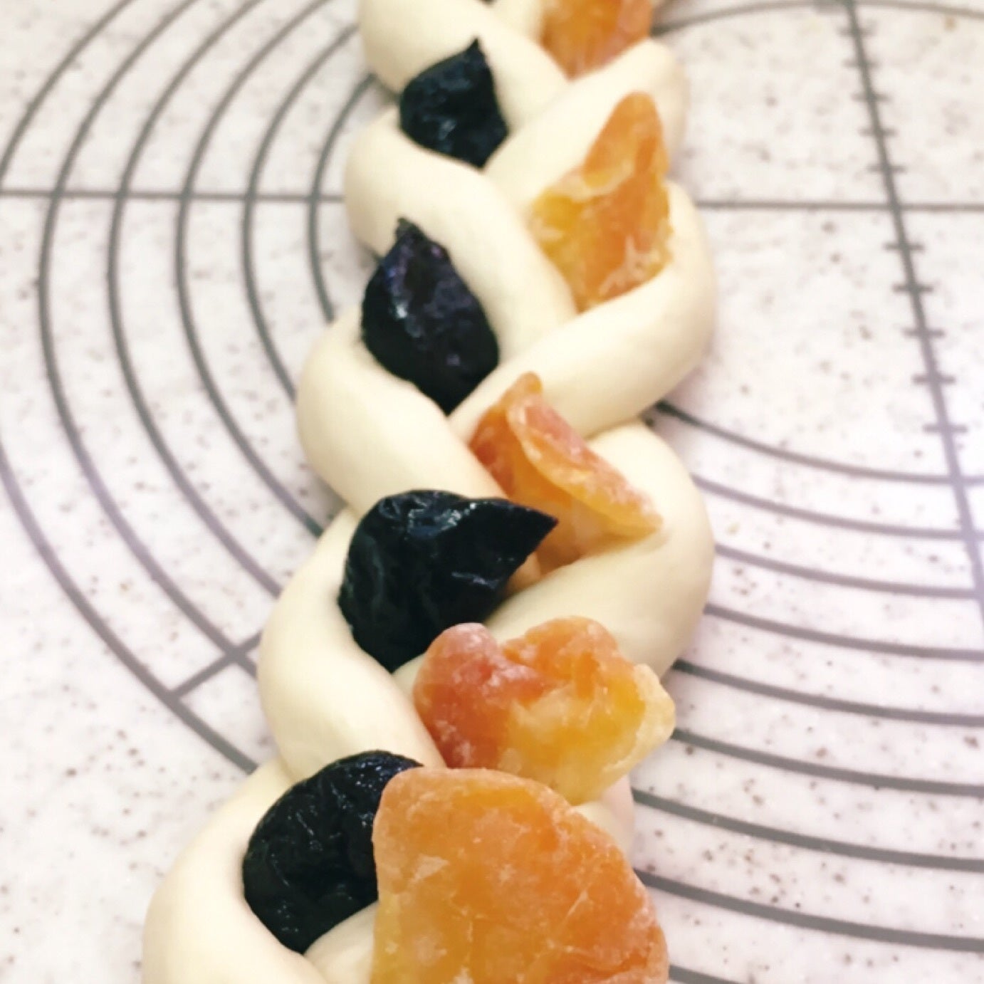 3つ編の間にフルーツを交互に挟み