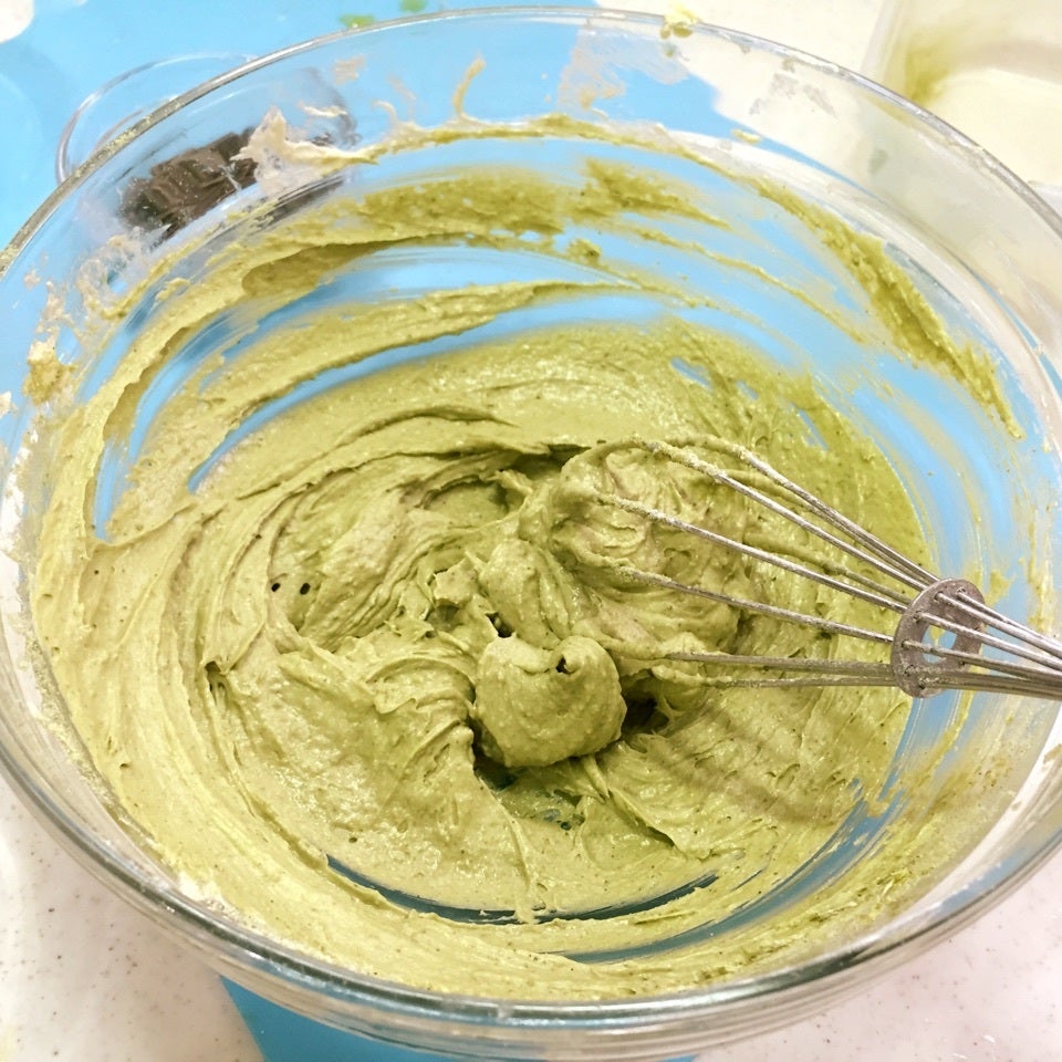 アマンドクリームは 甘さ控えて抹茶も濃い目!