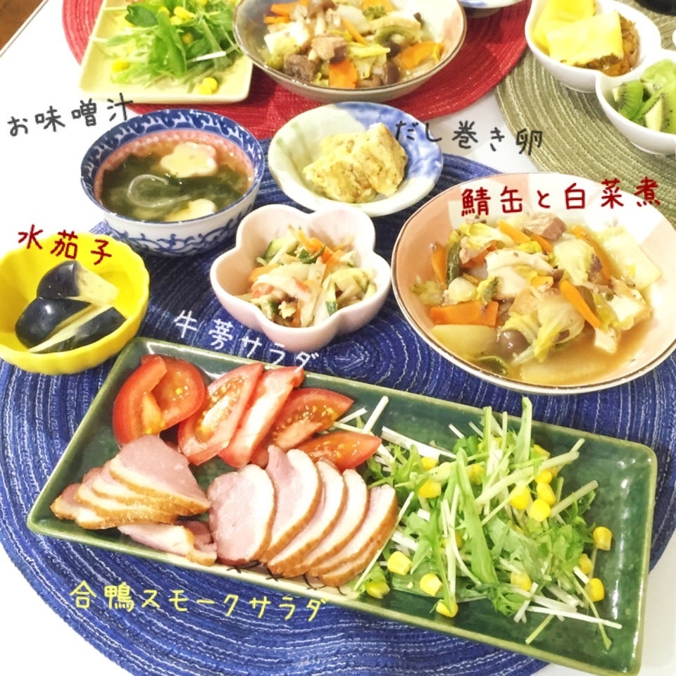 ○鯖水煮缶と白菜の煮物 (人参 しめじ 油揚げ)