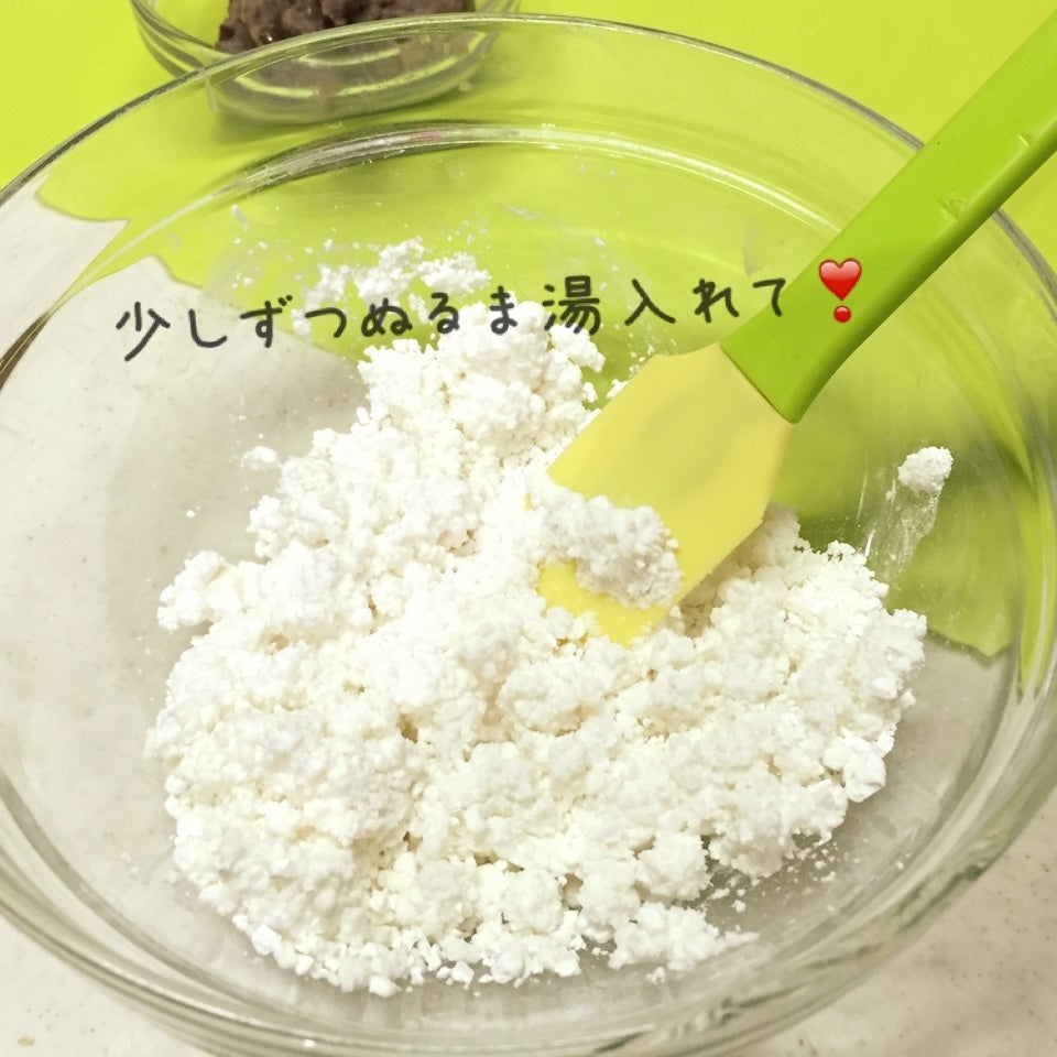 02少しずつぬるま湯混ぜて ある程まとまれば 半量に分けて〜