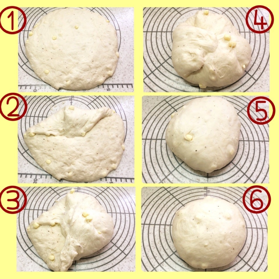 ⑤⑥表に返し生地を張らせる様に丸める ※(プルマン成型です)