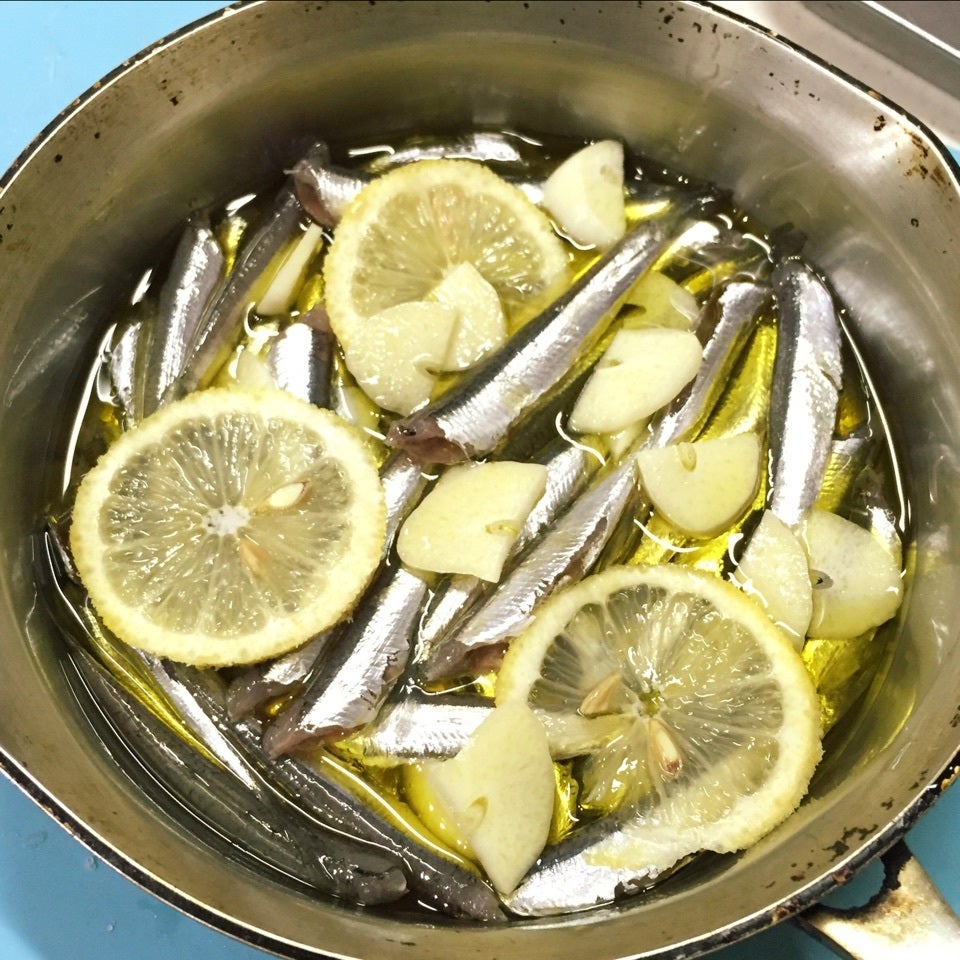 早速 自らキッチンで鰯の処理に奮闘〜‼︎