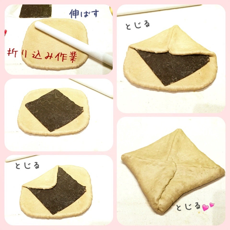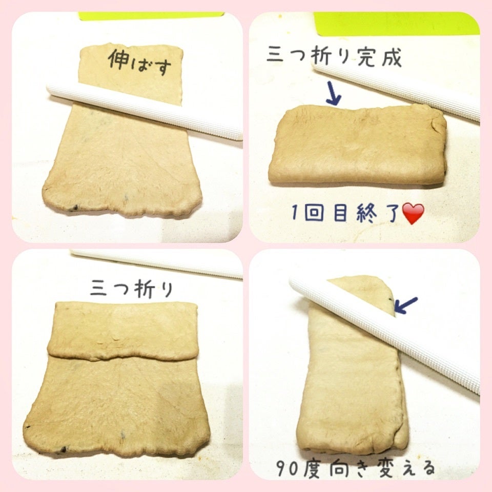 ▲途中で生地が破れても バターが溶け出す心配がないので 破れた箇所をつまんでそのまま続けます!