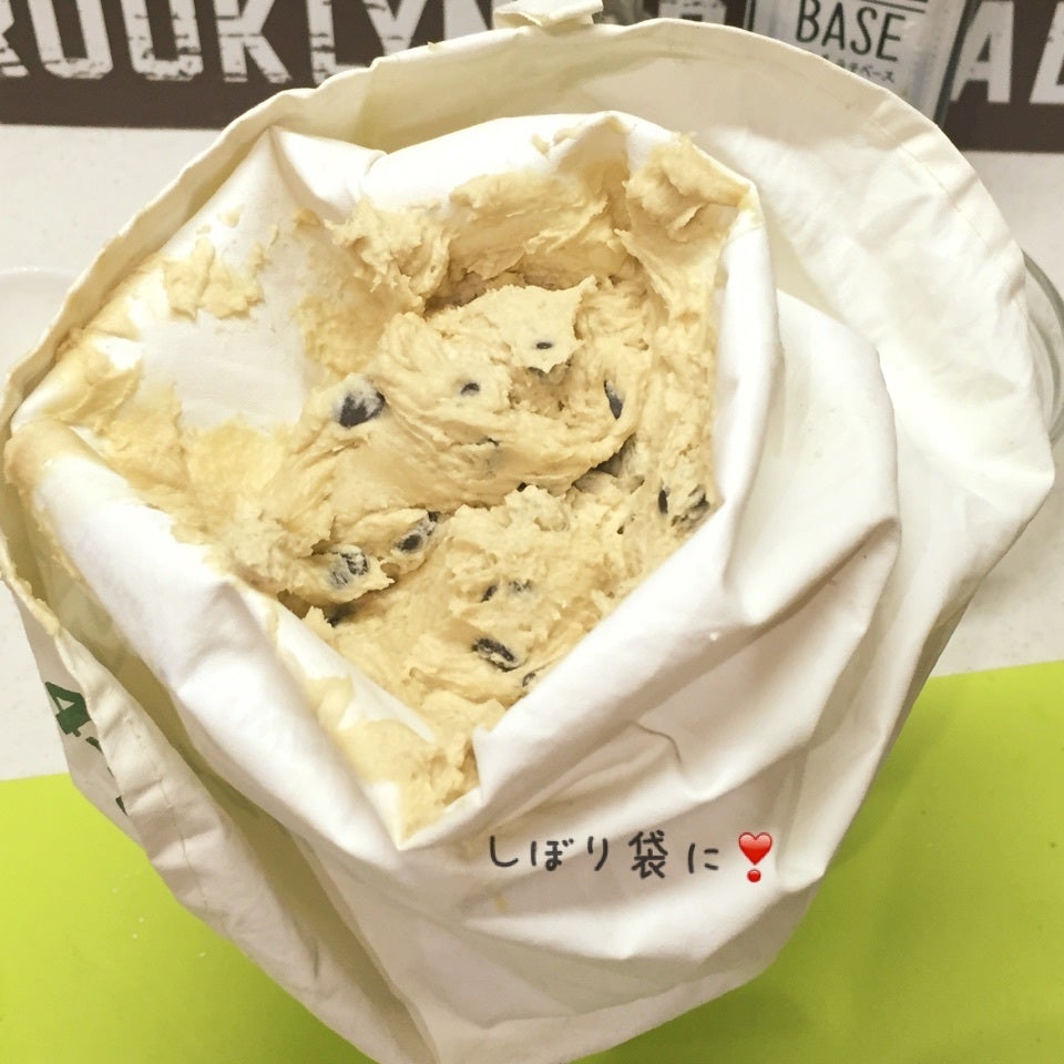 絞り袋に入れ 天板に落とすだけ